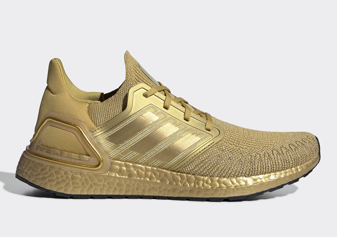 Adidas Ultra Boost 20 is evoking its luxury by way of color. The whole body of this Adidas Ultra Boost 20 is shaded with different tones of gold color. Below are the photos of this Adidas Ultra Boost 20