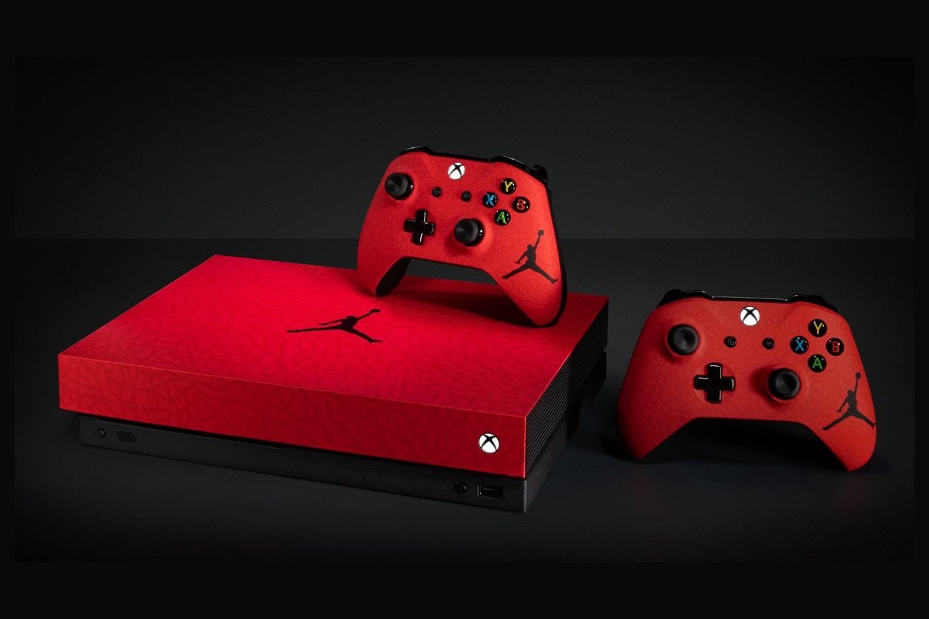 Microsoft partner with Nike to introduce Jordan-themed console. Xbox One X is in red finish with the iconic Jordan elephant print covering the top part of the console. Controllers are also in red finish with the Jumpman logo. It is designed to match the new Air Jordan III Retro U sneaker