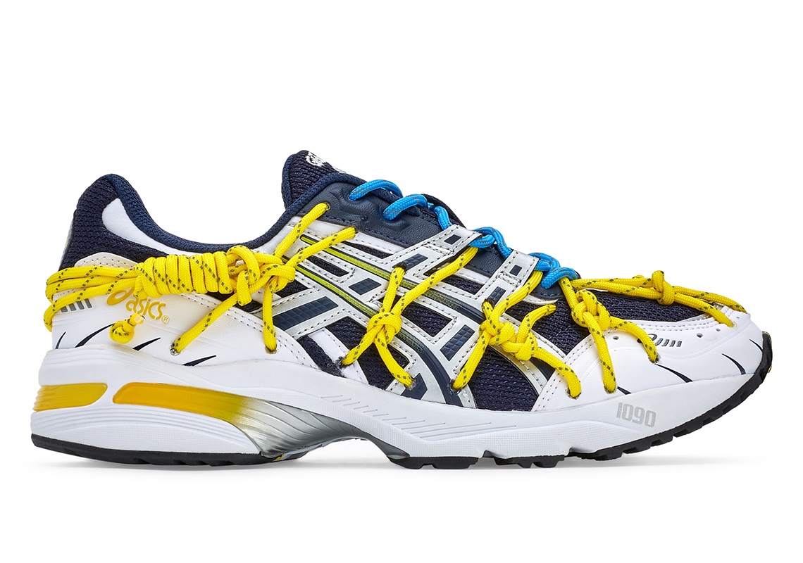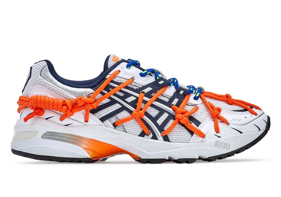 Rok Hwang collaborates with ASICS for GEL-1090 and GEL-KINSEI. Paracord wrapping the uppers. It is available in bright red, orange, yellow and matching black. They are now exclusively to Dover Street Market locations now.