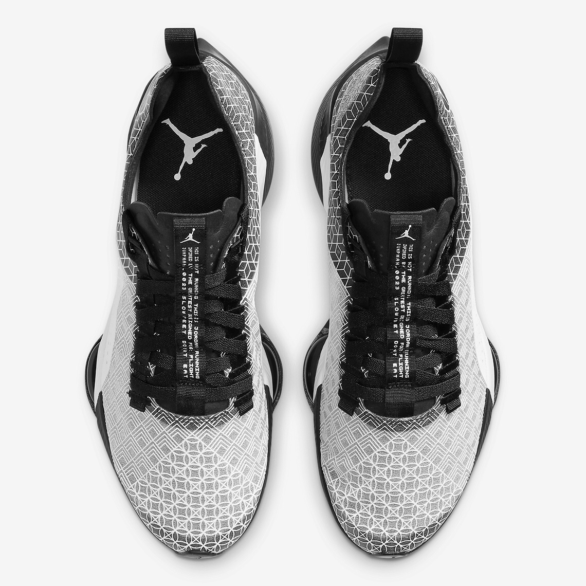 Jordan Zoom Renegade is quieting down with simple black and white arrangements. The entire uppers is accented with geometric patterns of different structure, which is all hued in white. Black colorway sandwiched both the forefoot and heel, and brighter neutral outfit much of the entire midfoot. Perforated side panels extend until the tooling, the base masked underneath and the exterior shell. It is expected to release at Nike webstore within the coming months.