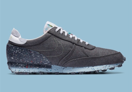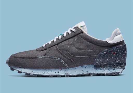 Nike Daybreak Type Space Hippie collection is built up with recycled materials. The shoe is contrasting its appearance in both color and texture. The uppers is in dark grey weave with bearing various imperfections of different color. Large pieces scrap are embedded at the midsole, the tread and connected heel counter. It is going to release soon.