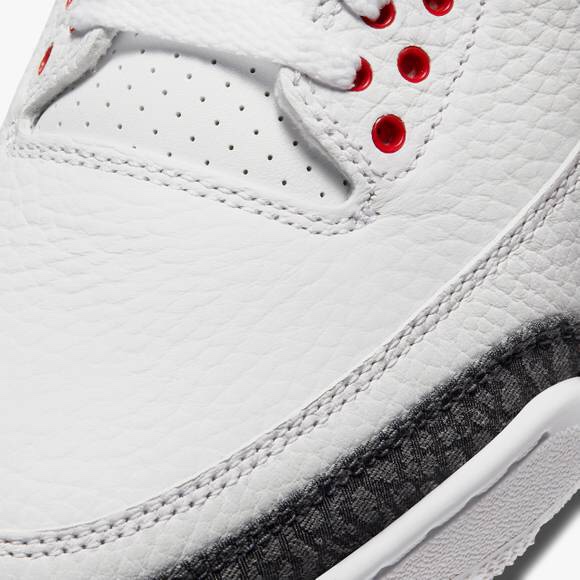 Jumpman has provided official look at Japan exclusive CO.JP iteration. Grey elephant printed denim bequeaths the shoe and appears on toeboxes, heel and eye stays. The rest of the upper is classic Jumpman with white tumbled leather base, pops of red on the foremost eye stays, tongue graphic and collar, and small dashes of black. Translucent plastic tab with a standard Jumpman logo covers Nike Air heel. CO.JP is printed insoles and two tone white/black midsole with clear Air Max unit round off the look. Price is USD 190.