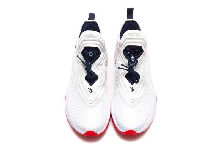 Nike Basketball has given LeBron Soldier 14 “University Red” highlights. It offers clean white uppers and signature crown logo is debossed at the top of the shoe neoprene’s tongue. A thick red rubber overlay is placed at the rear quarter, alongside an embroidered mini-Swoosh. It is currently available and price is USD 146.