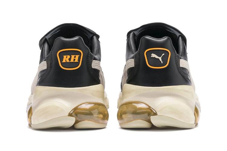 RHUDE and Puma have united to build a new Cell King. The upper is drawn directly from PUMA’s memorable King Football boot with lower half uses CELL technology. The upper features king boot-inspired uppers which are built from rich black leather. PUMA’s classic Formstripe is done up in grey suede, RHUDE branding is debossed on the lace flap. The midsoles are in yellow colored and features large CELL cushioning unit. Moreover, white and black laces and co-branded insoles round off the look. It is set to release on September 5th on PUMA webstore. Price is USD 150.