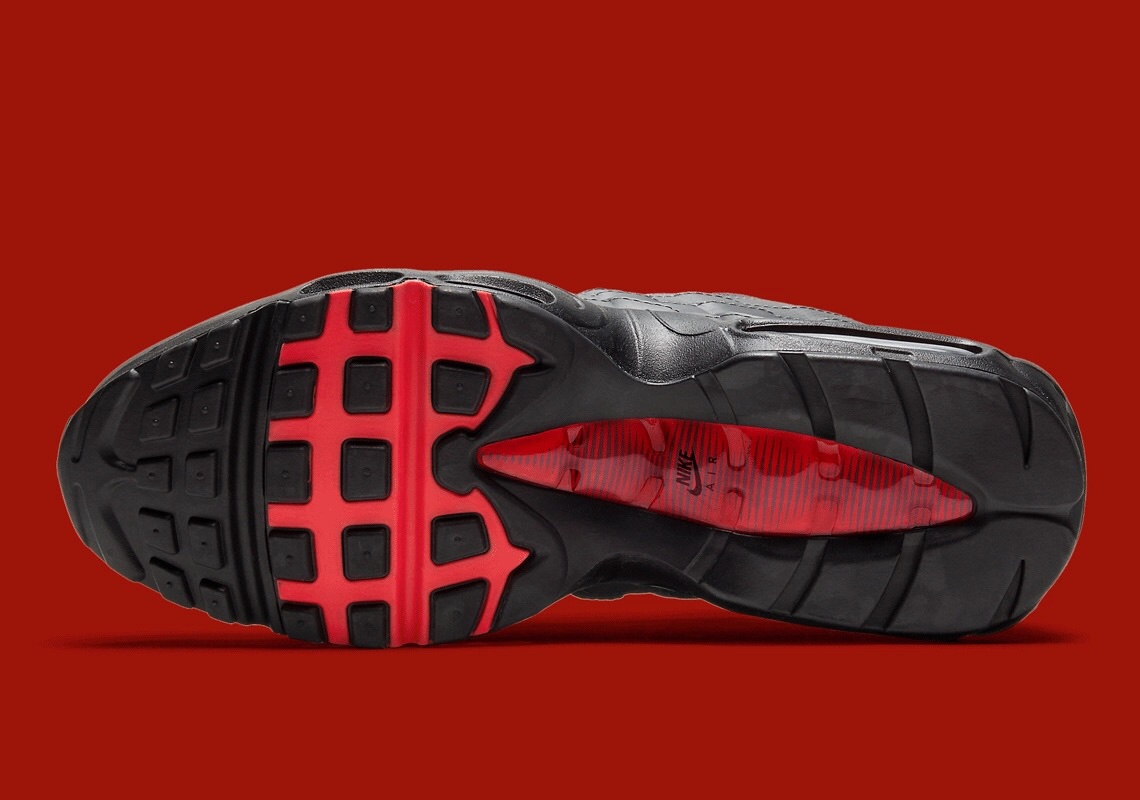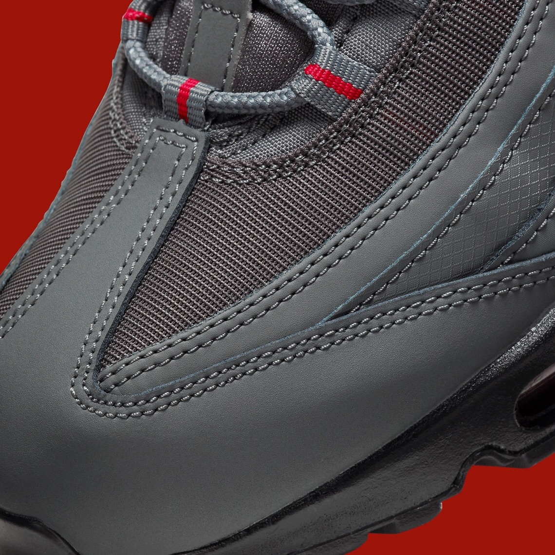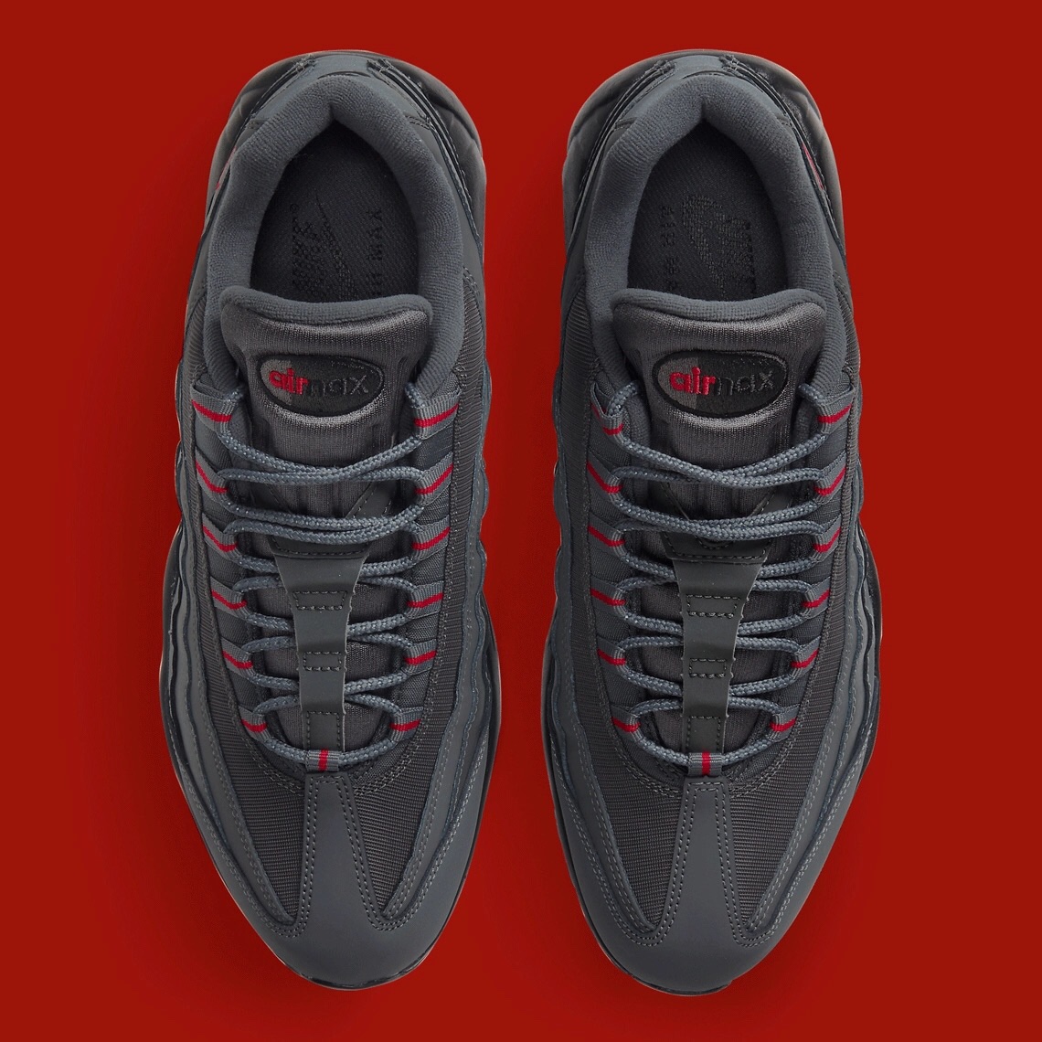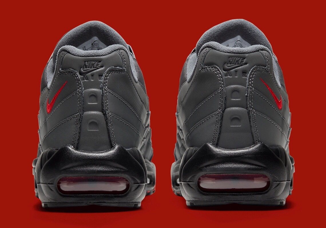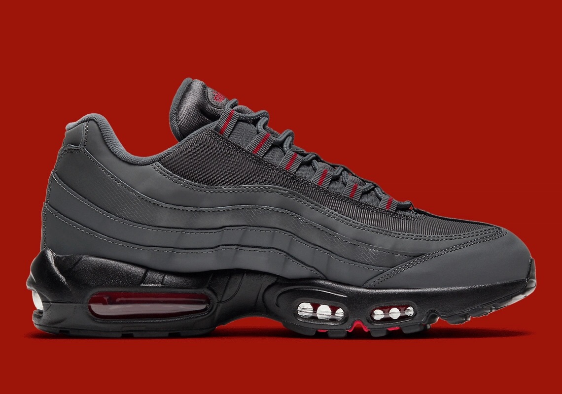 Nike Air Max 95 continue to celebrate its 25th anniversary with newly surfaced pair which clad in dark grey and accented with red. From the profile layers to the overlay around the toe, everything is clad in greyscale palette. Branding on the tongue and heel are clad in muted black, while detailing on the lace loops and lateral heel Swoosh are in stark red contrast. Air Max units are enclosed by a black midsole. Outsoles boast a dark arrangement which tread towards the forefoot. The release date is still unknown, but the price is USD 160.