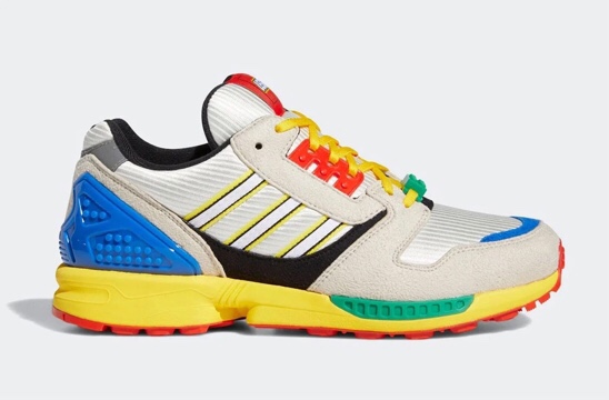 LEGO collaborates with adidas to come up with adidas ZX8000. LEGO blocks appears at the heel counter and eye stays areas. White mesh and grey suede panels contrast with the LEGO branding that dresses the tongue. It is going to hit adidas webstore on September 25th with the retail price of USD 130.