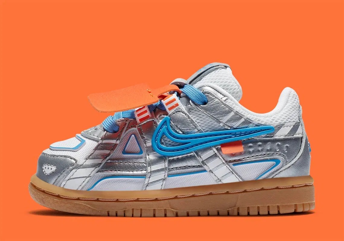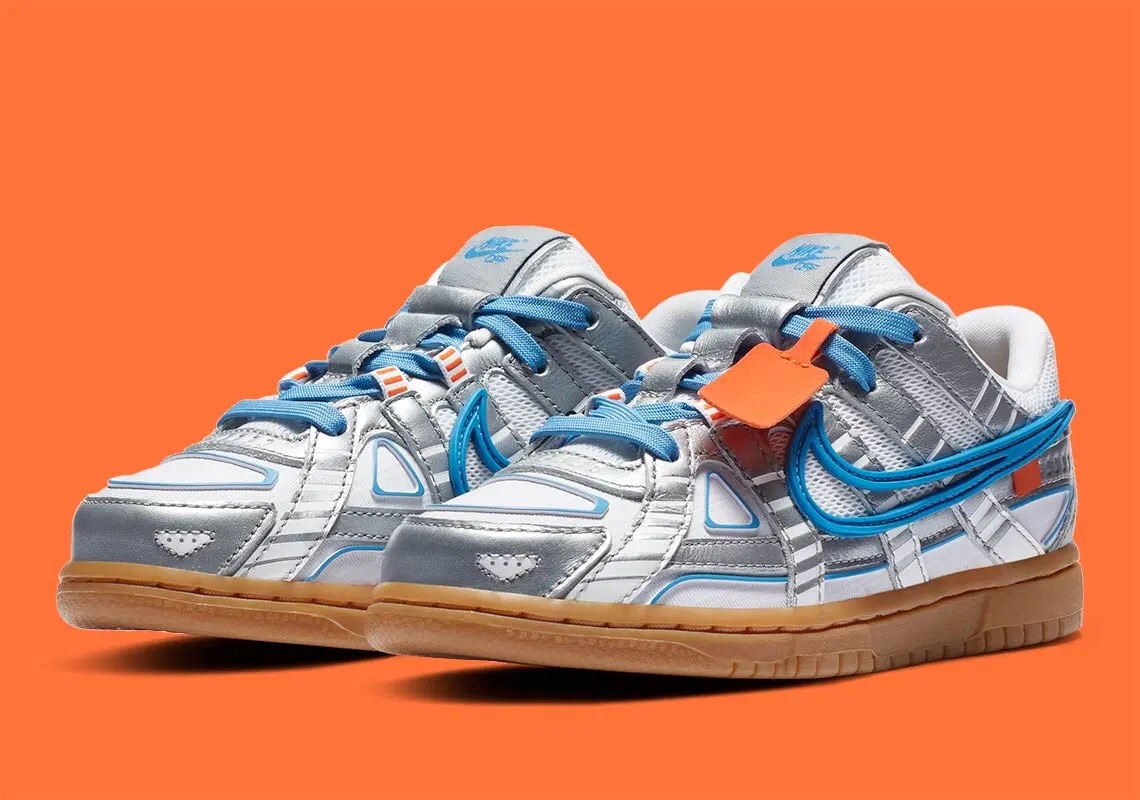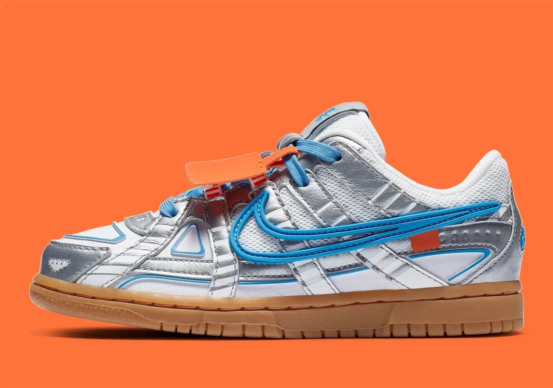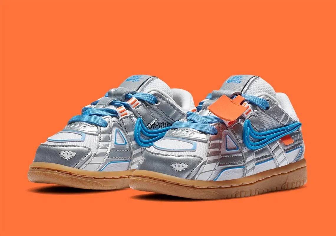 Off White x Nike Rubber Dunk is to pay homage to late 90s/ early 2000s palettes and silhouettes. It merges the iconic Pegasus line and overwhelming popular Dunk. Off-White signature motif layer atop as orange tabs, oversized zip-ties, and text adorned laces dress just adjacent. Silver metallic paneling and complementing mesh bases replete throughout the rest of the construction. The release date is October 1st with the price tag of USD 190.