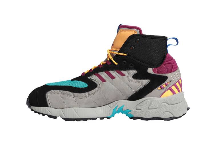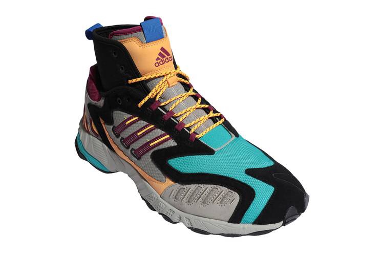 Adidas Originals presents Torsion TRDC Mid silhouette. It is debuting in a bold “Tech Beige/Power Berry/Solar Gold” colorway. It is equal parts sneaker and hiking boot. It has raised collar and elongated tongue, and built from a mixture of multi-colored synthetics and mesh. Toe box present a bright ocean blue hue, and the midfoot and heel equips a wolf gray base. It is now available at retailers with the price tag of approximately USD 161.