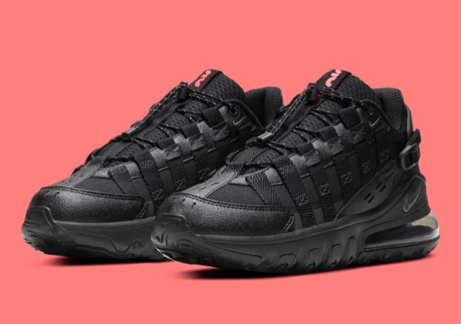 Nike Air Max 270 Vistascape has recently emerge with predominant black arrangement accented with scarlet branding. The bend of materials across the silhouette’s upper are given disparate textures. The lacing system incorporates a speed technique which achievable with lace toggle. Buckled straps partially hidden by leather panels at the midfoot. Modern Aix Max logo on the tongue and sock liner indulge in infrared-reminiscent hue. The sole unit underfoot cover with React foam, Airbag and geometric Storm Tread of which they are all in an all-black ensemble. Price will be USD 170.