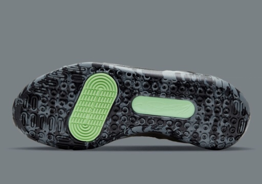 Latest Nike KD 13 is arriving in “Black/Metallic Dark Grey/Cool Grey” colorway. It is lightweight, the uppers are replete with materials with different textures. The patent leather lateral Swooshes are overlaid on mesh and leather, tongues and collar padding indulge in “Black”. Thus, it boasts a tougher, detailing on the laces and lateral forefoot midsole tooling. Light fluorescent green takes over cushioning accents from underfoot and the sole unit features “Cool Grey” pattern for some added flair. It is going to release on October 1st with the price tag of USD 150.