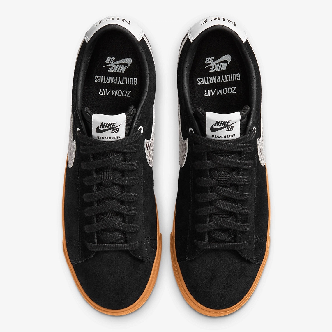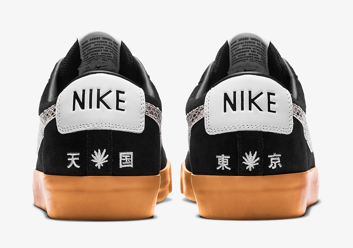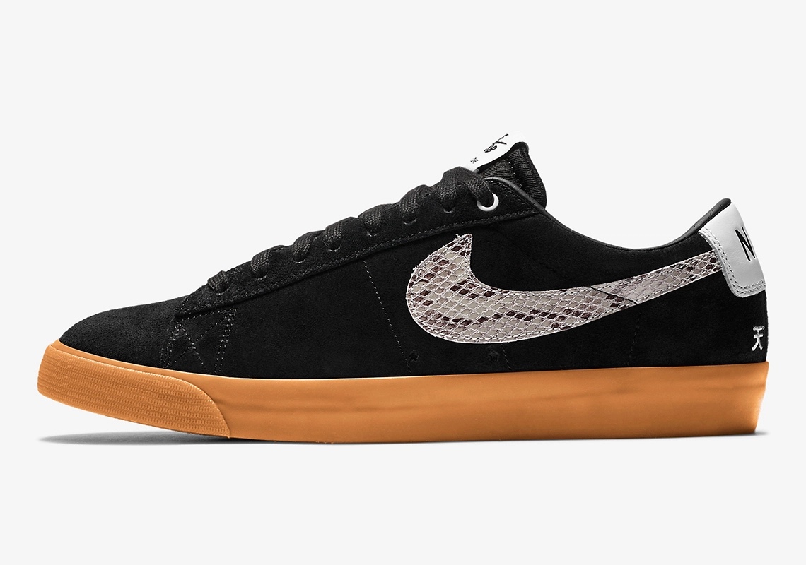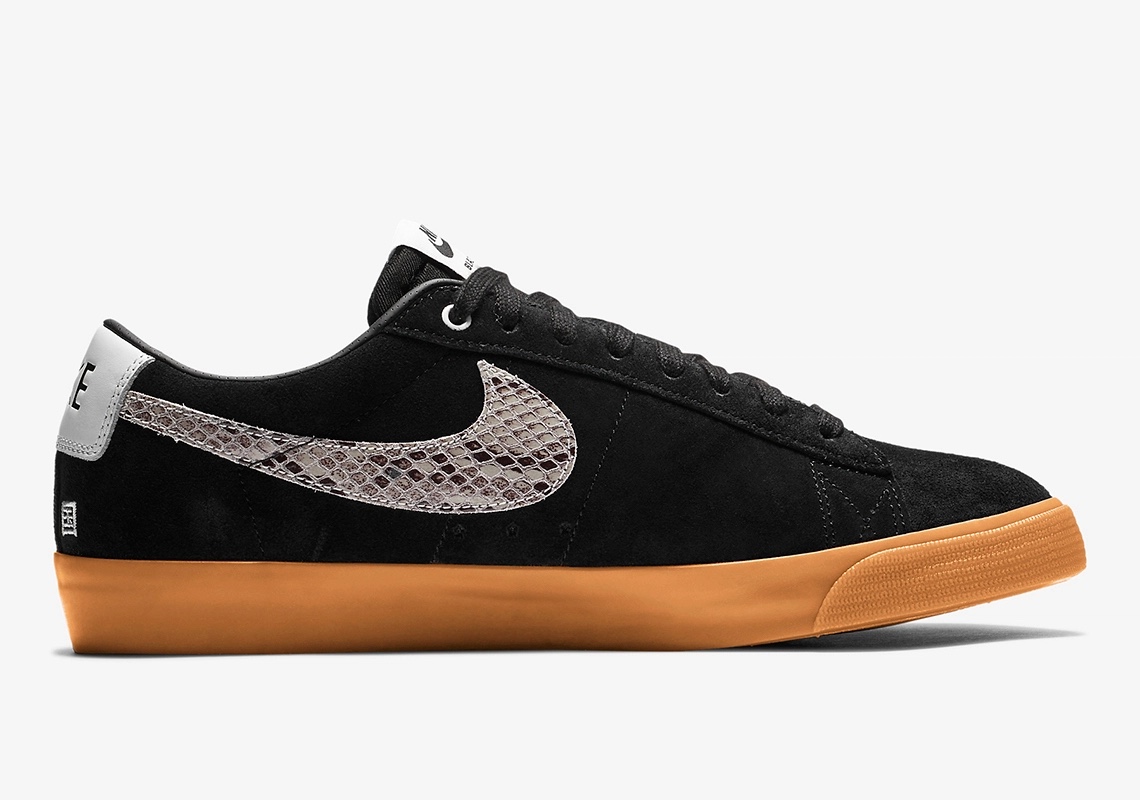 - The blazer is built with black suede and gum soles, a snakeskin on the Swoosh.