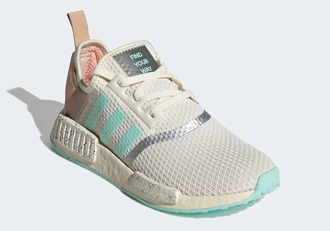 - It is dressed up with creamy uppers and color blocked with notes of pastel green across the stripes.