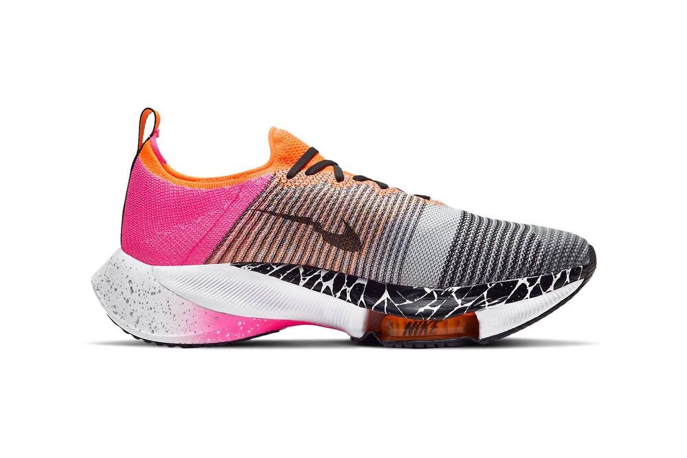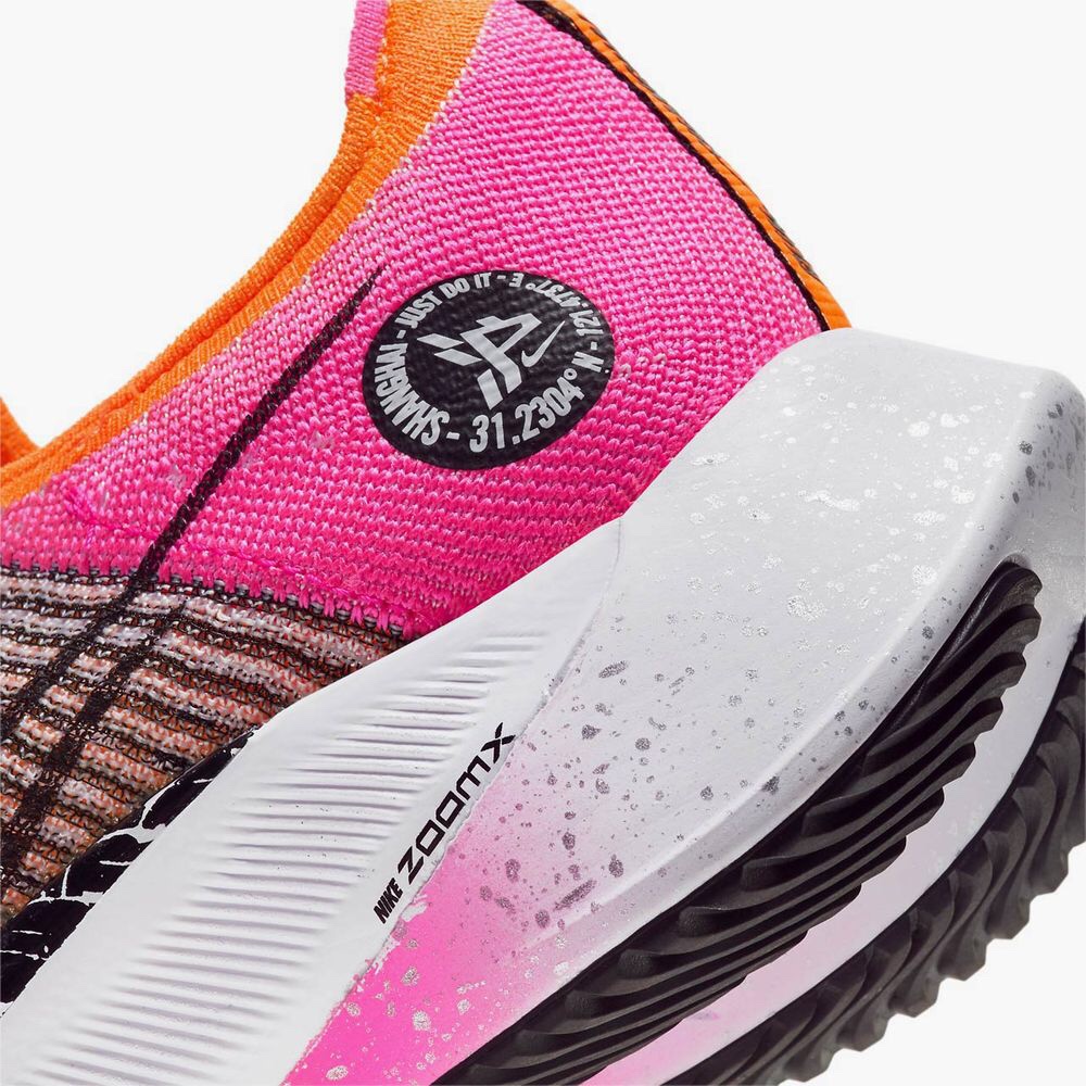 - ZoomX foam midsole mixes speckles, patterns and a touch of hot pink on its foam construction.
